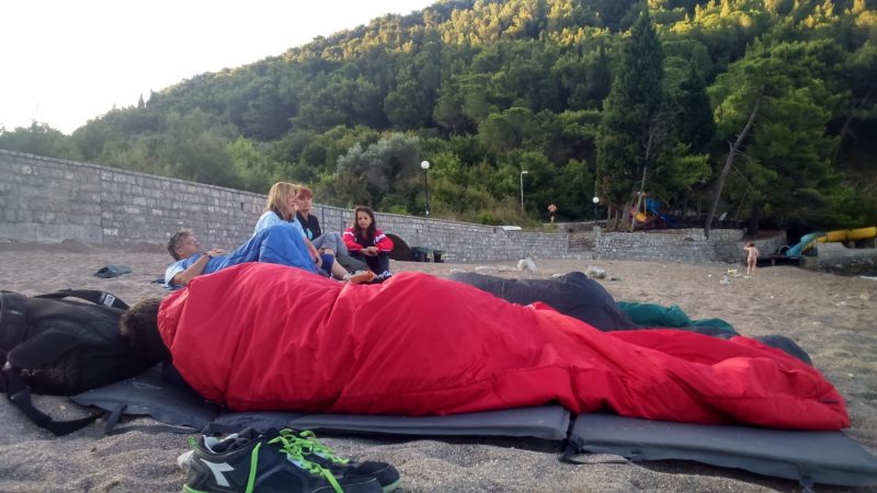 Prošli smo Albaniju noću, sa kratkom pauzom u Tirani i ušli u Crnu Goru, oko tri izjutra. Potpuno spontano, vođa puta je rekao vozaču da stane evo tu i da tu spavamo. Tu je plaža. Neki Petrovac. More. Nema smisla sklapati šator u ova doba, spavaćemo na plaži. Izjutra popiti kafu, provesti par sati na plaži i nastaviti put kući. Sjajna spontanost koju je gotovo nemoguće doživjeti na grupnim putovanjima.
