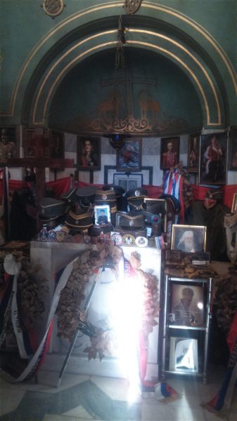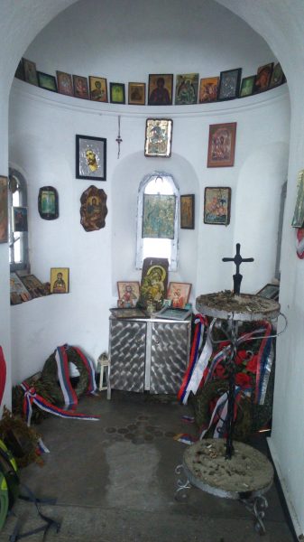 Nakon par sati, kroz gustu maglu počeo je da se nazire krov. Krov srpske crkve koja je podignuta na samom vrhu planine Kajmakčalan. Crkva proroka Ilije. Završili smo uspon na Kajmakčalan, možda najuzvišeniju srpsku tačku. Ograda napravljena od ostataka granata. Kapela puna rekvizita koje ostavljaju posjetioci. Sokovi, svijeće, hrana, tamjan… Oltar ljubavi i ponosa.