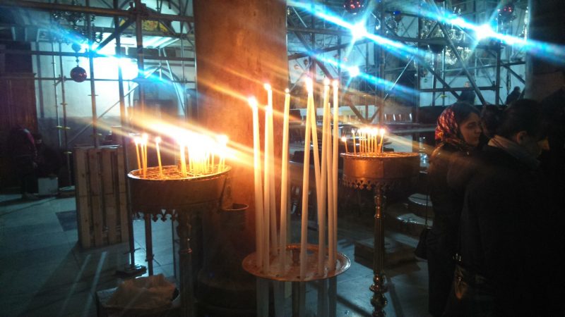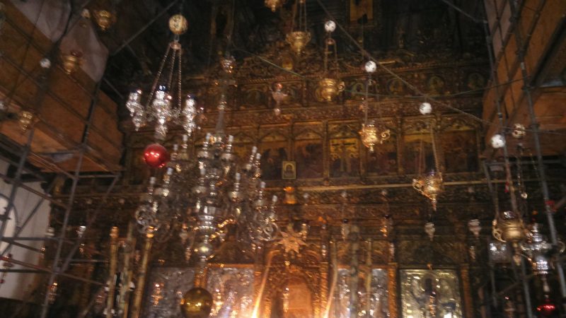 Sama pećina u kojoj se navodno Hrist rodio, nalazi se u sklopu grčke crkve. Tu postoji i katolička crkva, manastir, jermenska crkva i još neke bogomolje. Netrpeljivost prema drugim načinima obožavanja istog Boga je i ovdje sveprisutna. U katoličkoj crkvi, naravno, muzika piči sa CD-a. Neki religijski pop – rok, kao na onim bizarnim religijskim radio – stanicama po regionu.