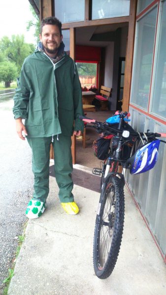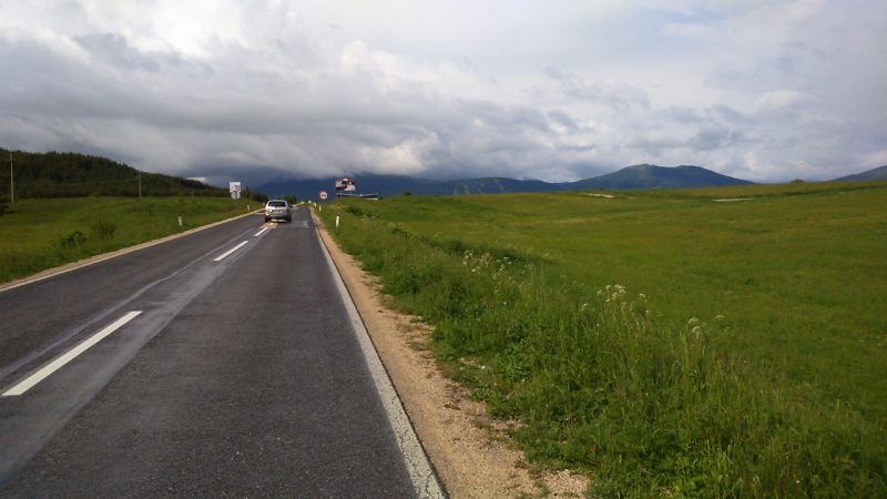 Ipak, pod kabanicom nije lako voziti. Nakon dva sata bio sam potpuno mokar. Znojav. Mokra mi je kosa. Gubim jako puno tečnosti. Energiju mi crpi dosadna kiša, uzbrdica, činjenica da sam mokar i da je prokleto hladno, ljigavo, odvratno. Nemam više ni vode. Hladan vjetar razbija. Pao mi je šećer. Moram hitno da dobijem dozu šećera kroz koka – kolu, čokoladu ili nešto slično. Strašan pad energije doživljavam. Ovakav pad nisam doživio čak ni kada sam prije dvije godine odvezao 400km unutar 25h, bez spavanja i dužih pauza. Nadljuski je to napor bio.
