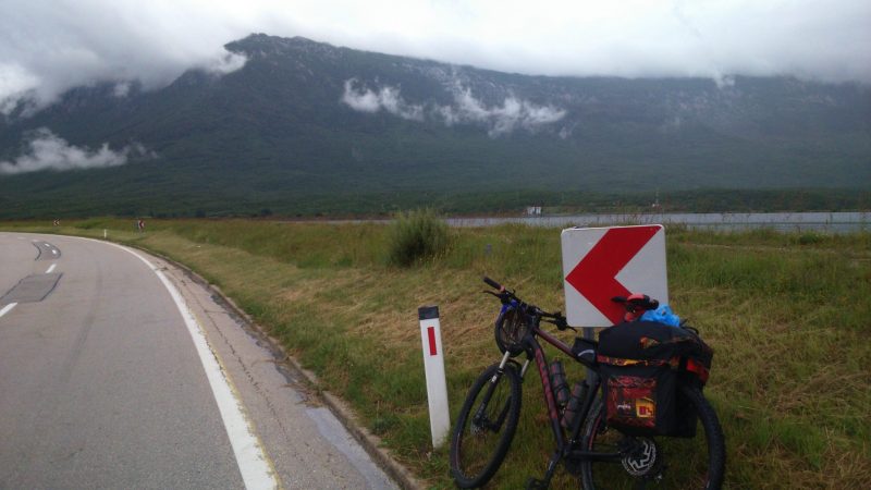 Užas, kakav pad. Nemam više mentalne snage. Vozim već treći dan. Planine i kiša me lome malo pomalo. Kidaju komad po komad mog entuzijazma i samopouzdanja. Ja im uzvraćam zadovoljstvom što nosač bisaga još uvijek čvrsto stoji i što se kilometri do Splita polako ali sigurno tope. Nevjerovatno, svake sekunde sam bliže. Samo da stignem do tog Trilja. Tamo ću da spavam, a sutra ću krenuti ka Splitu. Iako sam javio Oliviji iz Zajednice da ću stići večeras, to očito neću izvesti.