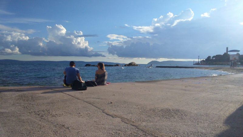 Sinoć sam vozeći se po gradu onako raspadnut nakon 150 odvezenih kilometara, sa maramom na glavi, znojav i smrdljiv, sa biciklom natrpanim mokrim stvarima koje se na njemu suše prošao ulicama Splita, sve do plaže, gdje sam se našao sa Olivijom, domaćinom. Prvi utisak na mene su ostavile splićanke – lipe su za popizdit. Ležerne, opuštene. Šarmantni dalmatinski dijalekt ih čini još atraktivnijim. Šta god da kažu, koliko god gadno bilo, zvuči ispravno. Prvo što sam čuo bilo je kako jedna preslatka splićanka u prolazu pored mene govori drugoj, još slađoj – a jeba te požuri, moran ić na kenjaru.